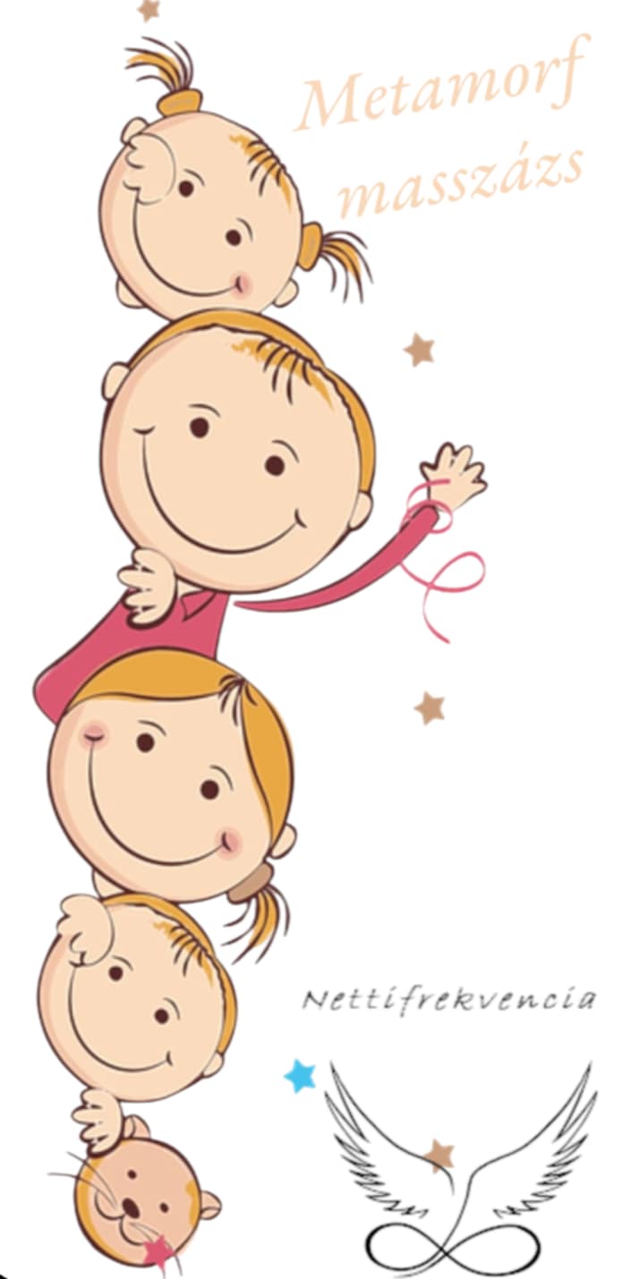 Nem minden nevető gyerek boldog, és nem minden feszültséggel teli gyerek boldogtalan. A gyerekek annyira csodálatos radarral rendelkeznek, hogy azonnal érzik a környezetükben lévő emberek energiáit, és képesek ezen energiák szerint működni és cselekedni. A gyermekek elsődleges egyik feladata kapcsolódni legelsőnek saját magukhoz, a szüleinkhez majd ezt követően testvérekhez, az óvodában és az iskolában a többi kisgyerekhez és társadalom többi rétegéhez. Korunk legnépszerűbb "betegségtünete" a stressz Őket sem kerüli el. A biológiai fejlődésük szakaszainak is megvannak a sajátosságai pl.: ahogyan növekednek és kitágul, számukra a világ ezzel egyetemben érzékelik mindazt a sok elvárást amit a külvilág megkövetel tőlük. A legtöbben szeretnének megfelelni az elvárásoknak, sajnos így pont a saját egyensúlyukat veszíthetik el a kapcsolatot. Ezáltal saját maguktól távolodnak el s ez által előjönnek bizonyos viselkedési problémák:önbizalom hiány, szorongás, agresszió, tanulási nehézségek, figyelemzavarok, diszlexia és társai… A metamorf masszázs (szeretett masszázs) fel tudja oldani ezeket a problémákat lelki blokkokat. A kezelés mélyreható és több szinten működik. A metamorf (szeretet) masszázs kezelés során három idősíkot érintünk:1.) előző életekből hozott blokkok,2.) magzati korszakból hozott blokkok,3.) a születéstől a jelenig létrejött blokkok kezelése/oldása történik .A kezelések során a felgyűjtött tartalmak feldolgozása által élet-energiaáramlásunk helyre áll és javulás állhat be életünkben így segítséget nyújt.• oldja a feszültséget, a szorongást. • javítja a test és az agy közötti kapcsolatot.• a helyes énkép és a pozitív önértékelés kialakítását.• növeli az önbizalmat.• csökkenti vagy oldja a magatartás zavarokat.• csökkenti vagy oldja a felhalmozódott feszültséget.• segíti és fejleszti a koncentrációt. Időpont egyeztetés szükséges!
